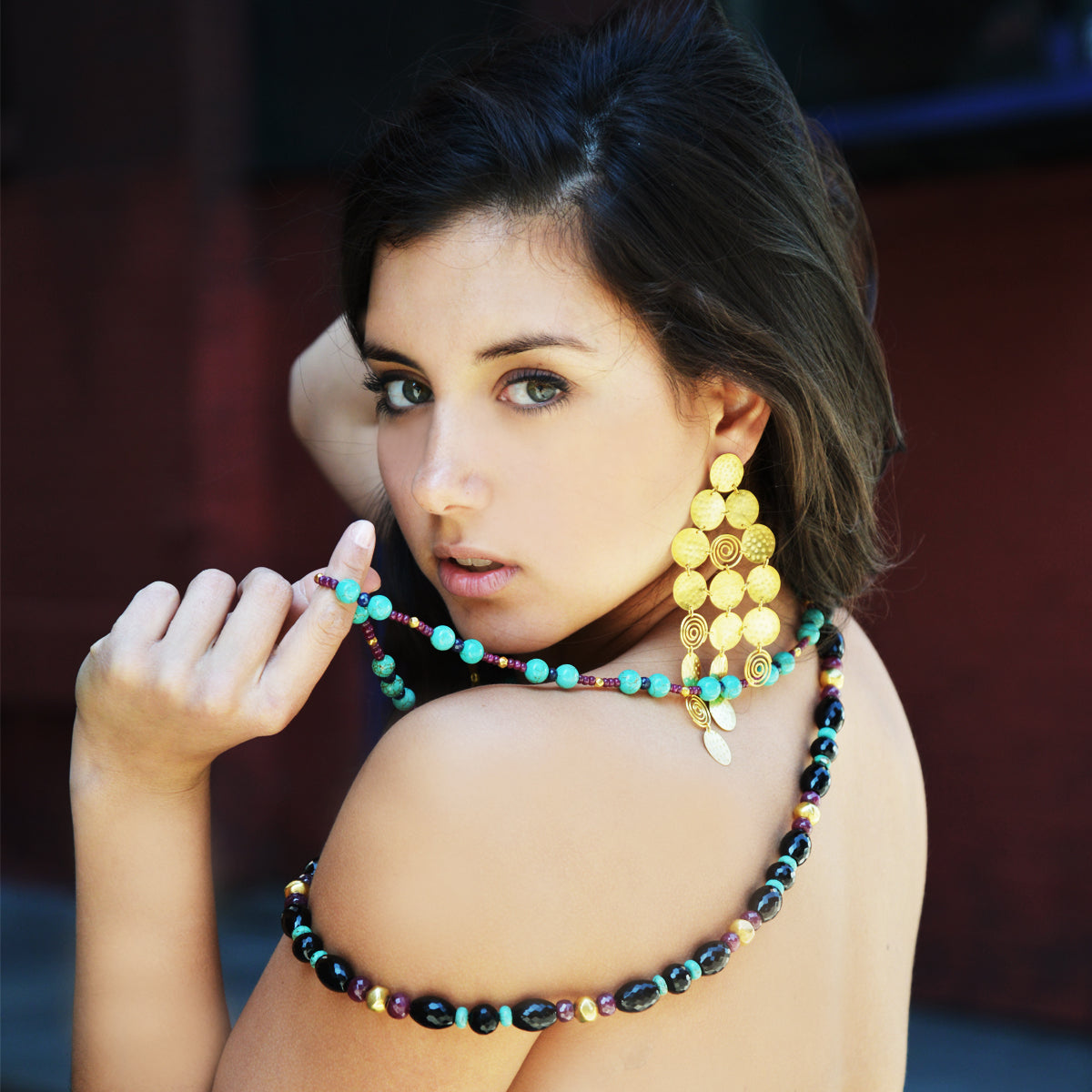 18k Gold Sapphire Ruby and Turquoise Najma Necklace